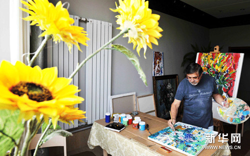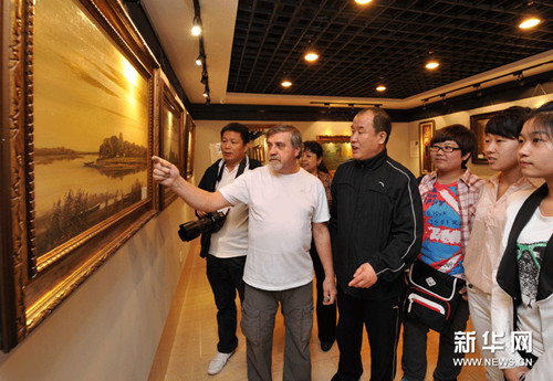 俄罗斯“人民艺术家”卡拉别伊尼阔夫·维达利·费拉基米罗维奇来自俄罗斯克拉斯诺达尔市,目前正在中俄边城黑龙江省黑河市中俄文化艺术中心进行油画创作。63岁的维达利和同行的亚申·谢尔盖是中心迎来的首批驻馆创作的俄罗斯画家,他们将在这里进行为期十天的创作,并与中国绘画爱好者交流。维达利说:“作为中俄文化交流的使者,希望我们的创作和展示能增进两国艺术家和绘画爱好者之间的相互了解。” 黑河市中俄文化艺术交流中心目前馆藏俄罗斯油画300余幅,其中90%为俄罗斯“人民艺术家”和“功勋画家”的作品。据介绍,中心计划每年邀请俄罗斯著名画家进行驻馆创作,以艺术展览的形式增进两国文化艺术交流。新华网图片 王建威 摄